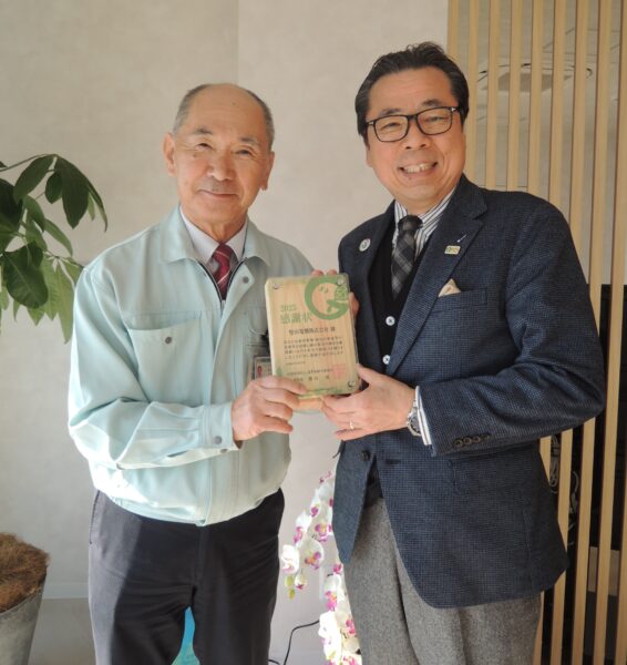 とりわけ、環境の分野においては、地域の生態系の保護や環境の保全に配慮するとともに、化学物質の取り扱い管理を徹底し、環境汚染の予防に努められており、これらの取組の一環として「緑の募金」の主旨にご賛同いただきご寄付を賜りました。