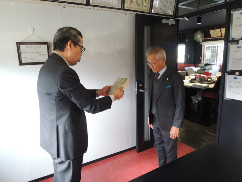 今年度、秋の募金期間中に10万円以上のご寄付をいただいた企業様を訪問し、「緑の募金」へのご協力への感謝をお伝えしています。