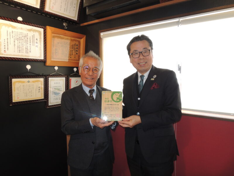 三和産業(株)様へ「緑の募金」感謝状を贈呈