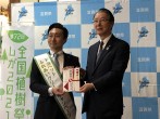1975年(昭和50年)に本県で開催された「第26回全国植樹祭」を記念して取り組まれているもので、2018年(平成30年)までの44年間に56,429本の緑化苗木の贈呈を受けています。今回贈呈を受けたナンテンは県内の学校等で植樹されます。