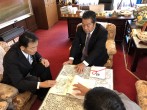 11月2日(金)に県内企業のトップランナーとして、日頃から地域に根ざした様々な社会貢献活動に取り組まれている(株)平和堂の執行役員総務部長兼社長室長の篠村様から当緑化推進会名誉会長の川島隆二滋賀県議会議長へ寄附金が今年度も贈呈されました。