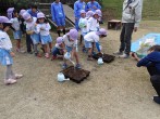 園児たちは樹木医の鹿田さんの植物の種についての話を興味深く聞きながら、一生懸命、種播き作業に取り組んでくれました。