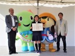 10月13日(土)、長浜市余呉町のウッディパル余呉において開催された県主催の「山を活かす!山を守る!山に暮らす交流会2018」に参加しました。天候にも恵まれ多くの人で賑わうなか、交流会の式典において、平成30年度「緑の募金・緑化推進」標語コンクールの表彰式が行われ、最優秀賞(知事賞)の鵜飼 紗さん(栗東市金勝小学校)に表彰状が授与されたほか、今年度、(公社)国土緑化推進機構より「森の名手・名人(森づくり部門)」に認定された中越豊さんへの認定証の伝達授与が行われました。