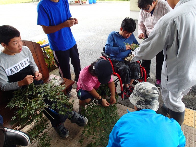県立甲良養護学校(甲良町)において、平和の緑づくり事業(モミジ種まき)を実施