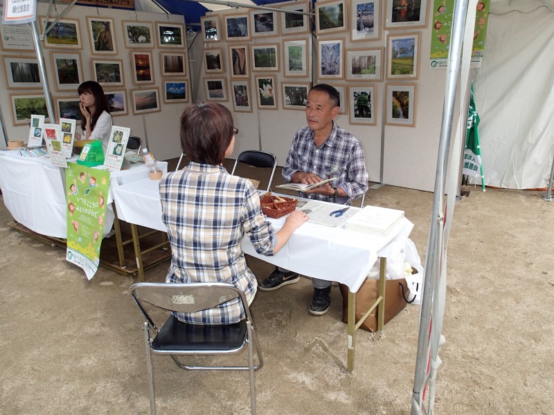 当日。当会ブースでは写真コンクール入賞作品の展示、緑化相談コーナーを設けて、緑の募金の啓発活動を行いました。写真上:写真コンクール入賞作品の展示状況、写真下:緑化相談コーナー