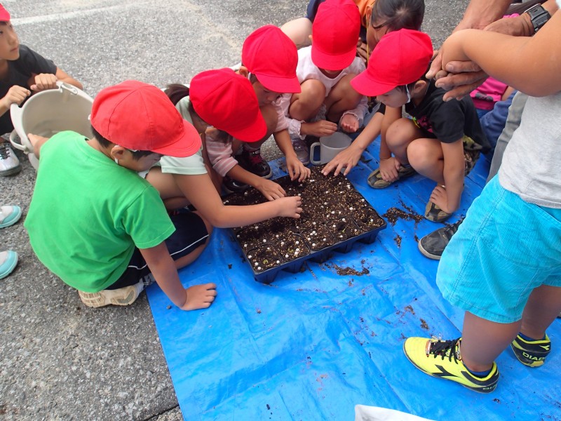 亀山小学校(彦根市)において、平和の緑づくり事業(モミジの種まき)を実施