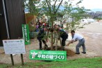 前日までの雨も上がり、時折雲の間から陽がさすという中、園舎近くに県の木「モミジ」をシンボルツリーとして植樹するとともに、5歳児の皆さんで実のなる木(キンカン)に「たくさん実をつけてくれますように」という思いで、土かけをしてくれました。