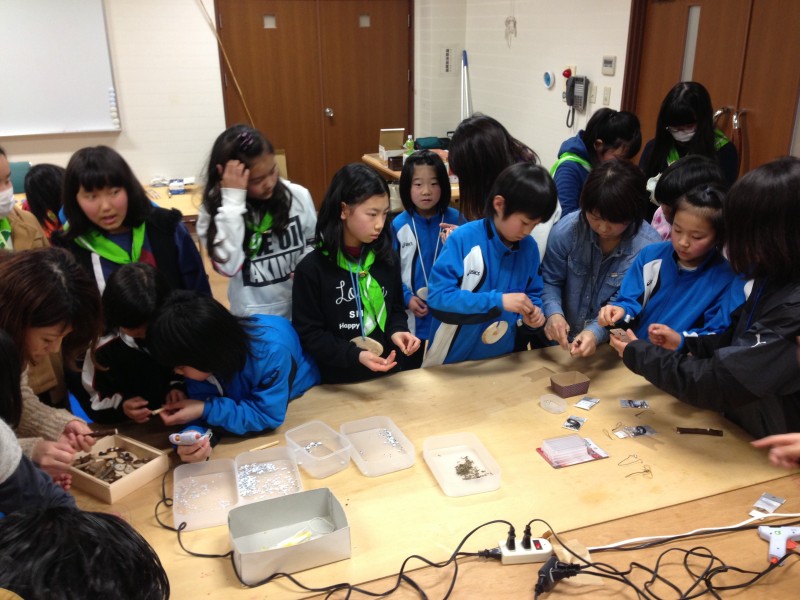 2月20日(土)、みさき自然公園パークセンター(守山市)において、「緑の少年団活動交流会」を開催しました。今年度は県内から4団、43名の団員が参加してくれました。当日は雨降りのあいにくの天気でしたが、午前中は公園内の自然観察、午後からは各団からこの1年間の活動報告を発表後、滋賀森林インストラクター会の皆さんの指導のもと、木の葉のパウチや自然枝木を利用してのネイチャ-クラフトづくりに真剣な表情で取り組みました。今回の交流会では各団の団員同士が和気あいあいの中、情報交換する姿も見られ、大変有意義な交流の場となりました。今後は各地域での少年団活動(学習活動・ボランティア活動・レクリエ-ション活動)を通じて、湖国の自然を愛し、他人を思いやる心豊かな人間になってもらうことを期待しております。