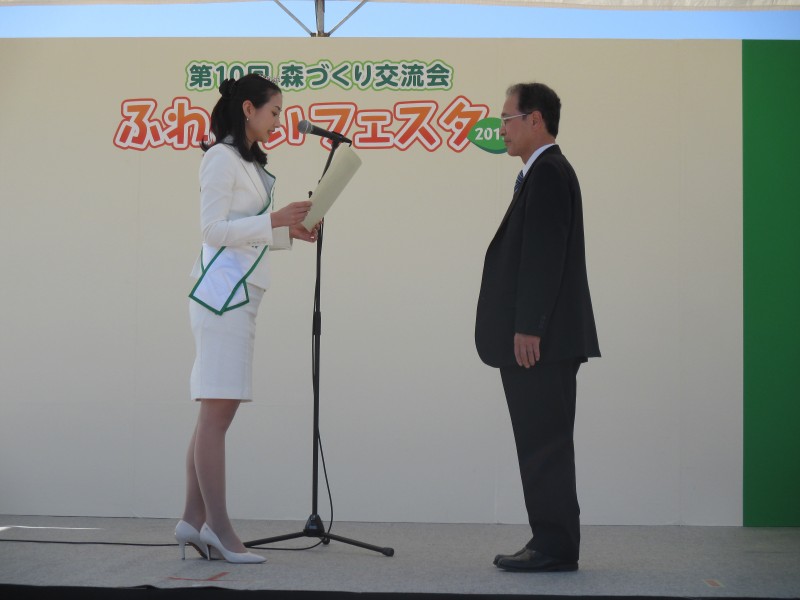 当日は、標語コンクールの表彰、今年からミス日本に新設された「ミス日本みどりの女神」に就任された佐野加奈さんによる「森の名手・名人」の認定証の授与をはじめ、当会ブースでは写真コンクール入賞作品の展示、緑化相談コーナーを設け、緑の募金の啓発活動を行いました。