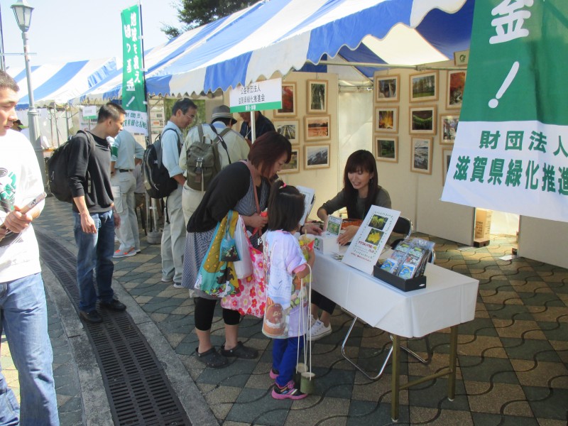平成27年10月3日(土)、長浜市豊公園において開催された滋賀県主催の「第10回森づくり交流会ふれあいフェスタ2015」に参加しました。会場には家族連れをはじめ、4,000人を超える人たちで賑わいました。