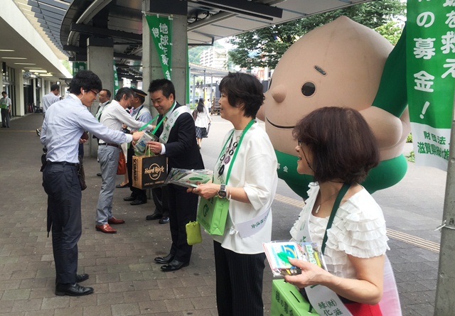初日の9月1日にはJR大津駅前をはじめ、県内6カ所で74名の各種団体・企業等の皆さんのご協力のもとで、街頭募金啓発活動をさせていただきました。これから10月31日まで県内のJR駅前等で街頭募金啓発活動をさせていただきますので、森林・緑づくりへのご協力のほどよろしくお願いします。