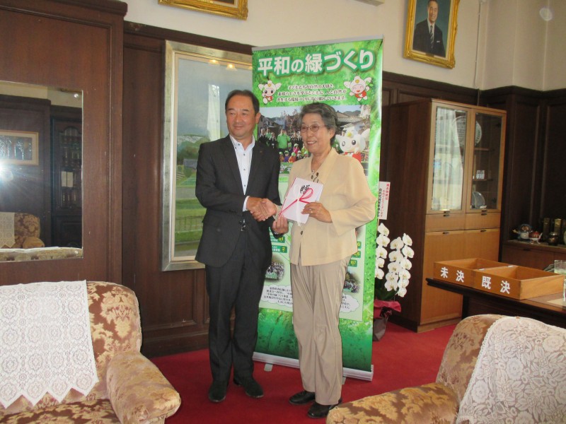 6月1日(月)に、県内企業のトップランナーとして、日頃から地域に根ざした多様な社会貢献活動に取り組まれている株式会社平和堂様の木村正人常務取締役から当緑化推進会名誉会長の西村久子滋賀県議会議長へ昨年度に引き続き寄附金が贈呈されました。