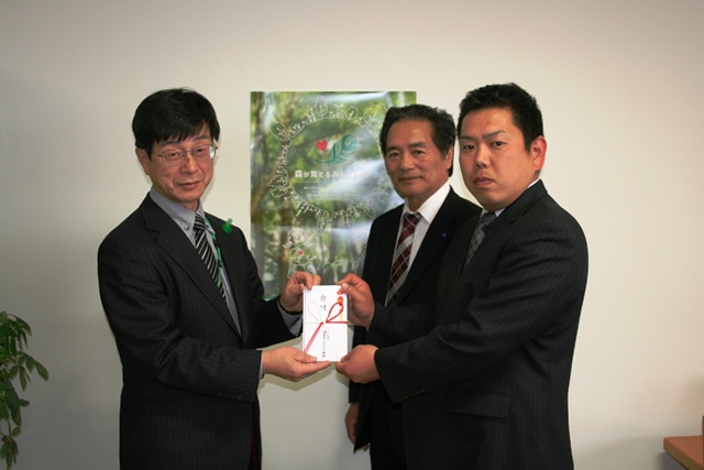 4月16日(木)に、LPガス供給事業により、県民の暮らしの安全と福祉の増進に寄与されている(一社)滋賀県LPガス協会様から、昨年に引き続き募金をいただきました。いただいた募金は湖国の豊かな森林・緑を守り育てるために活用させていただきます。ありがとうございました。