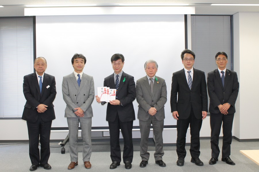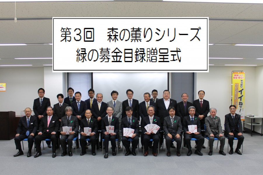 3月27日(金)に、日本ハム西販売株式会社様と株式会社フタバヤ様、スター株式会社様から「日本ハム 森の薫りシリーズ」の販売収益金をマッチング募金として寄付していただきました。今回は近畿2府4県の合同贈呈式として株式会社関西シジシ-本部(大阪)にて行われました。この寄付は平成24年度から毎年していただいております。いただいた募金は、県内の森林・緑づくりに活用させていただいております。ありがとうございました。