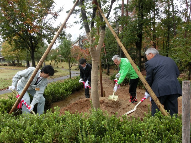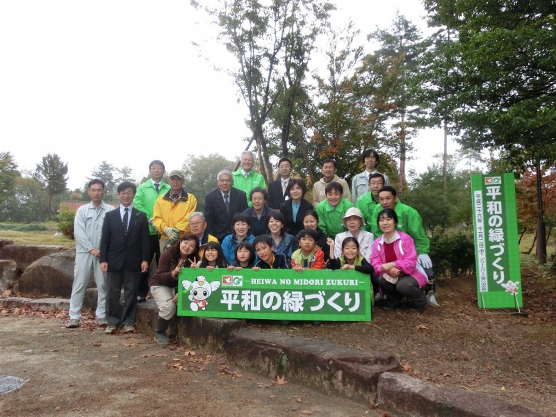 11月2日にグリーンパーク想い出の森(高島市)において、(株)平和堂様からご寄付いただいた有料レジ袋収益金で進めている「平和の緑づくり事業」の記念植樹式を開催。今回で3カ所目です。