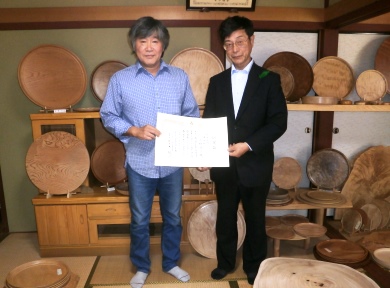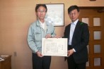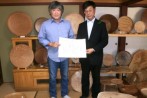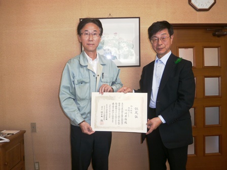 平成26年度は、加工部門として2名の方が認定され、平成26年10月7日(火)、滋賀県緑化推進会の押谷常務理事兼事務局長より認定書が伝達授与されました。