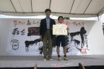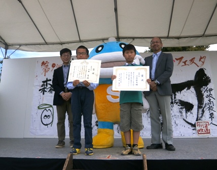 写真中:優秀な緑の少年団(長浜市木之本町賤ヶ岳みどりの少年団)の表彰のようす