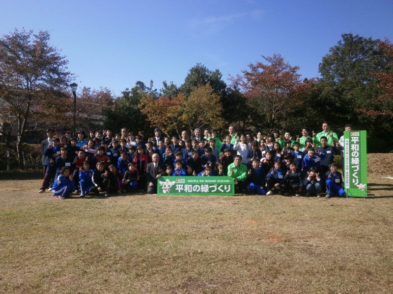 10月30日に高取山ふれあい公園(多賀町)において、(株)平和堂様からご寄付いただいた有料レジ袋収益金で進めている「平和の緑づくり事業」の記念植樹式を開催。今年度は県内10カ所で実施。
