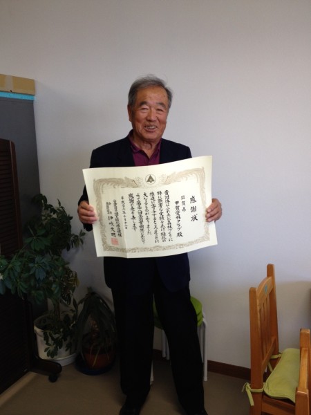 甲賀愛林クラブ様、平成26年度ふれあいの森林づくり優良市町村等表彰